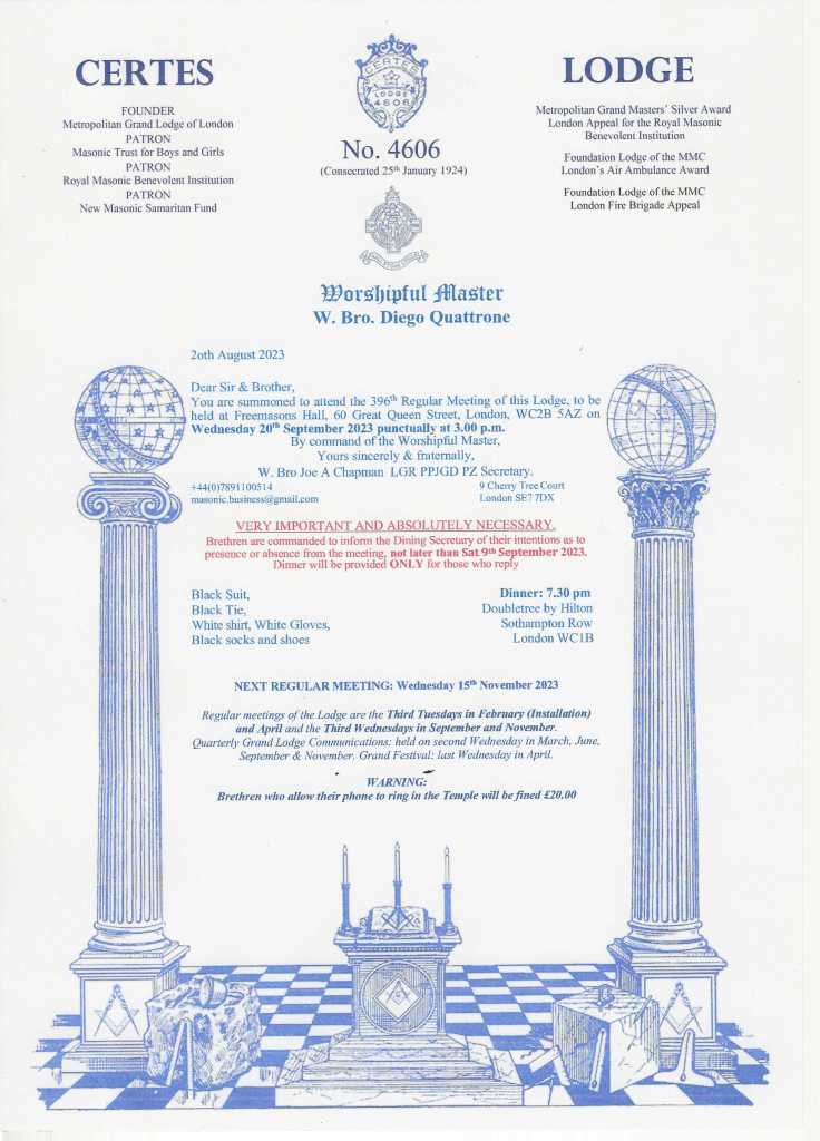 Certes Lodge meeting 20 Sept 2023 August 23, 2023 · by certes_pg · in News. · Share this:Tweet Email a link to a friend (Opens in new window) Email Print (Opens in new window) Print More Share on Reddit (Opens in new window) Reddit Share on TumblrLike Loading... Related